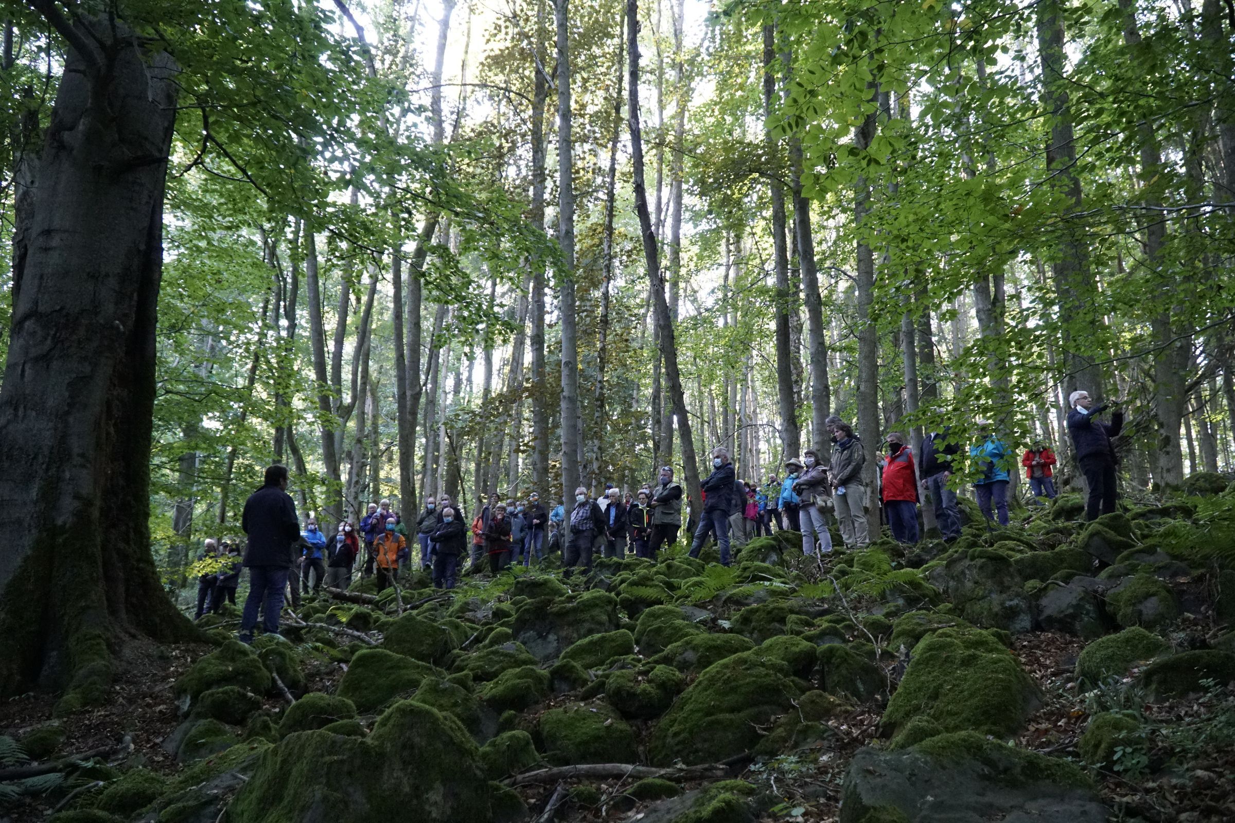 Bei der anschließenden Wanderung über Stock und Stein erklärten Ralf Straußberger(der Forstreferent des BN) und Markus Liegl (der Revierförster) welche besonderen geschützten Arten im Schutzgebiet vorkommen.
